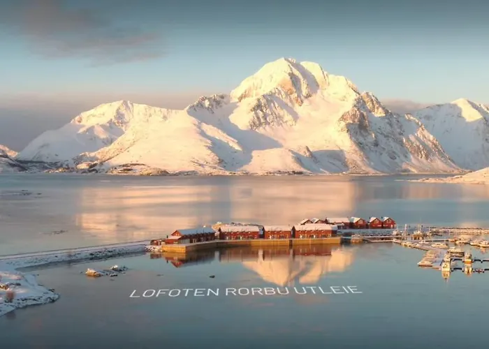 Lofoten rorbuutleie - Lilleeidet biedt uitzicht op het meer en zorgt ervoor dat gasten toegang hebben tot aerobicslessen. Dit appartement ligt op afstand van 10 minuten rijden van de luchthaven Leknes.